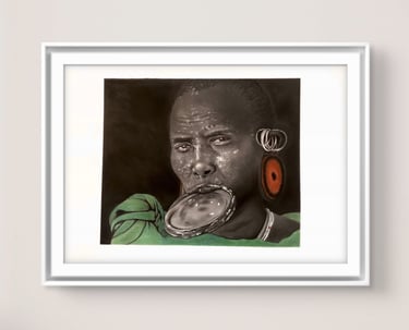 The Matriarch Collection is a hyper realistic portrait series honoring the beauty and resilience of the Mursi tribe women, whose presence, symbolism, and cultural markers have long stood as expressions of beauty, resilience, and identity. Their adorned silhouettes, intentional body markings, and deeply rooted traditions form the visual language that inspired this collection.